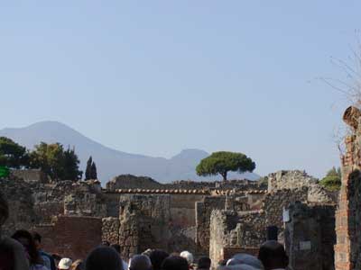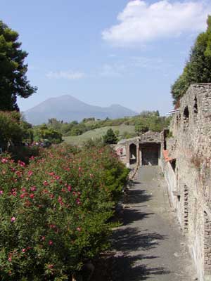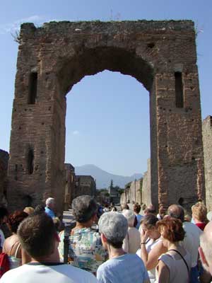 Here is an old entrance into the ancient city of Pompeii. Pompeii, of course, was the Roman city that was completely buried during a volcano eruption. In the background you can see the peak of Mount Vesuvius.