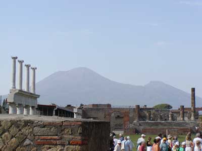 Here is a view of the main Forum of Pompeii. Mount Vesuvius stands in the background.