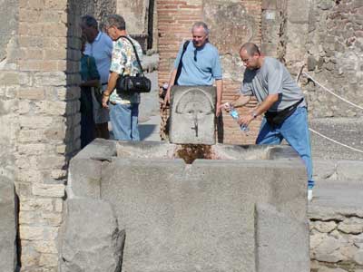 Here is an old public water well. Water still runs to this day, and people from our tour can be seen refilling their bottles.