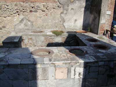 Here we come across what would be the Roman equivalent of a fast food restaurant. Each pot would contain a different food to choose from.
