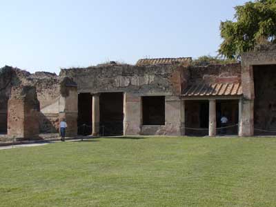 Here is the courtyard of one of the main public baths. The baths were separated by the sexes, and this one would have been the mens bath. The courtyard would be used for exercise and socializing.