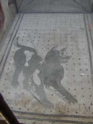 Here is another marble mosaic in the entrance of a Pompeiian home. This one says "Cave Canem" or "Beware of Dog".