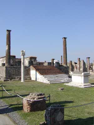 Here is a better view of the temple. The temple was destroyed in an earthquake a few years before the volcanic eruption and was being rebuilt when Pompeii was buried.